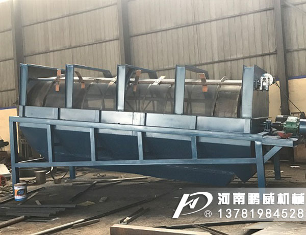 滾筒篩是分選技術中應用非常廣泛的一種機械,是通過對顆粒粒徑大小來控制垃圾分選的,分選精度高。滾筒篩的筒體一般分幾段,可視具體情況而定,篩孔由小到大排列,每一段上的篩孔孔徑相同。 為了提高分選精度,為了避免小顆粒物料在大孔徑篩分段被篩分出來的情況,垃圾在滾筒篩中必須經過充分的翻料,而且垃圾的移動速度不能過快。通常在滾筒內壁都會裝上撓板,它的作用就是提升垃圾顆粒,讓不同粒徑的垃圾顆粒都盡可能有機會接觸到篩孔,如果符合孔徑的要求,顆粒就能透篩,達到滾筒篩分選的目的。 為了提高篩分效率,垃圾在滾筒篩內移動的速度不能太快,否則將造成篩分不充分、不徹底,因此滾筒篩一般都有比較嚴格規定的安裝傾角,通常來說這個角度為5°,當然在實際情況下,可根據需要進行調整。